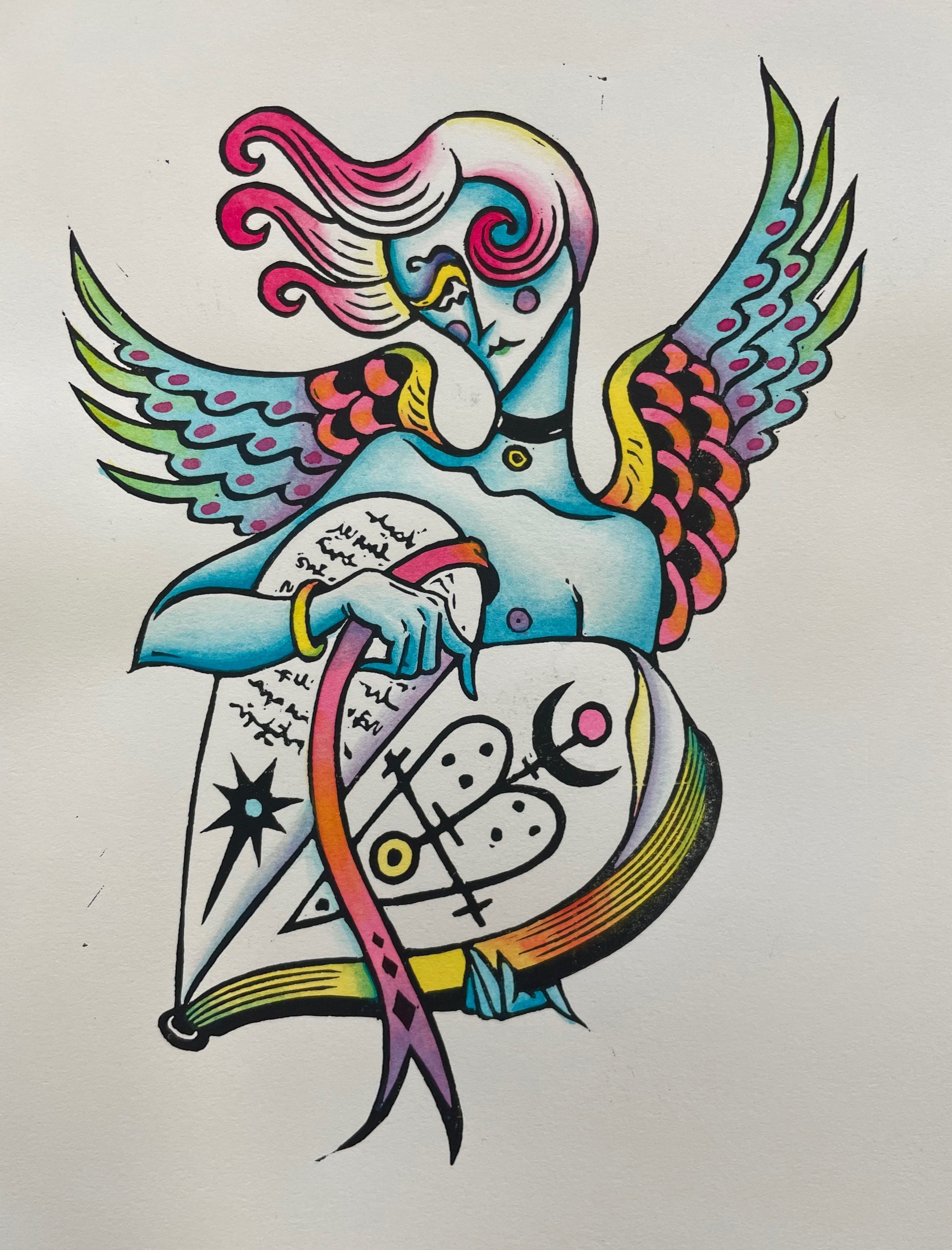 watercolour painted lino print, printed/painted area within A5