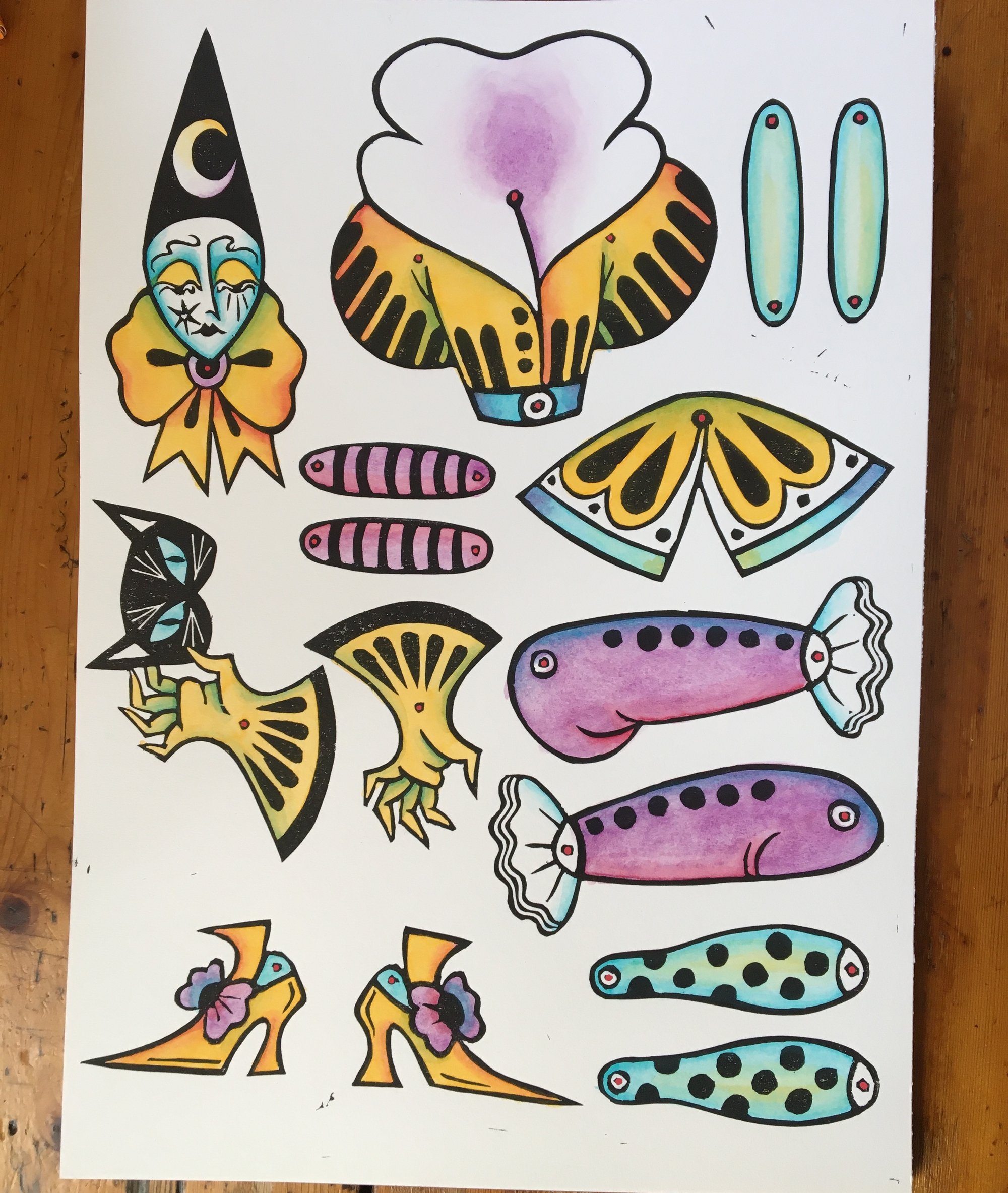 Lino cut print on 300gsm smooth watercolour paper, A4. Can be painted with watercolour, inks and colouring pencils. You can also order an already painted being.